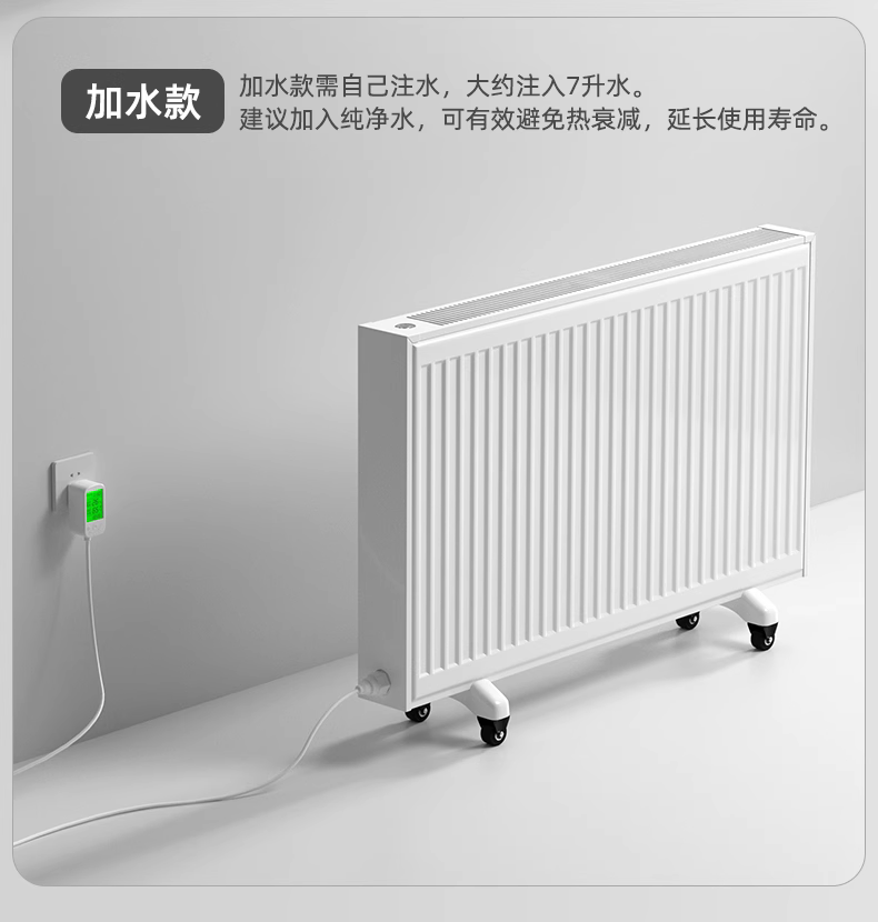 電暖氣片是一種將電能轉(zhuǎn)化為熱能的取暖用品,以水為介質(zhì)進(jìn)行傳遞與對(duì)流散熱,有效維持空氣溫濕度均衡,整夜安睡鼻腔不干。舒適度堪比水暖。省電節(jié)能無(wú)需補(bǔ)水,保護(hù)加熱棒的加熱效果。