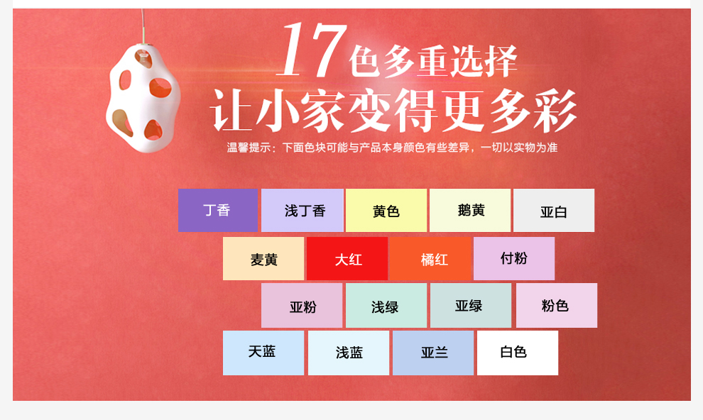顏色:白色、黃色、耦荷、果綠、粉紅、天藍等17色多重選擇